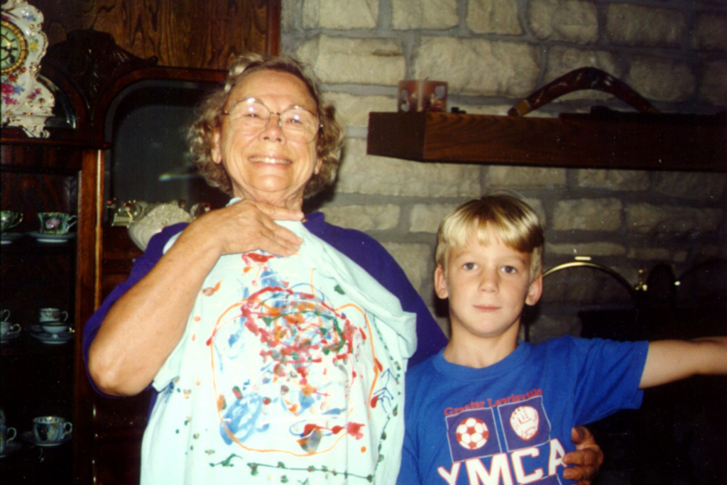 Sept. 1993: Grandma with her shirt from Sky.